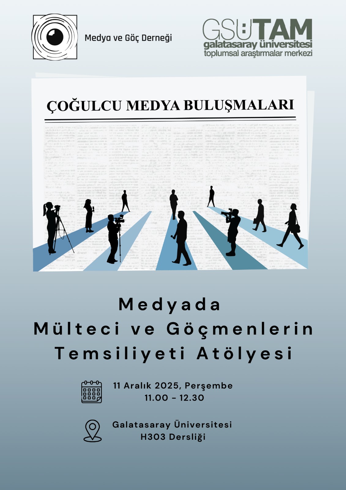 11 Aralık Perşembe günü 11.00-12.30’da, GSÜ TAM ve Medya ve Göç Derneği işbirliğiyle “Medyada Mülteci ve Göçmenlerin Temsiliyeti” başlıklı interaktif bir atölye düzenliyoruz.