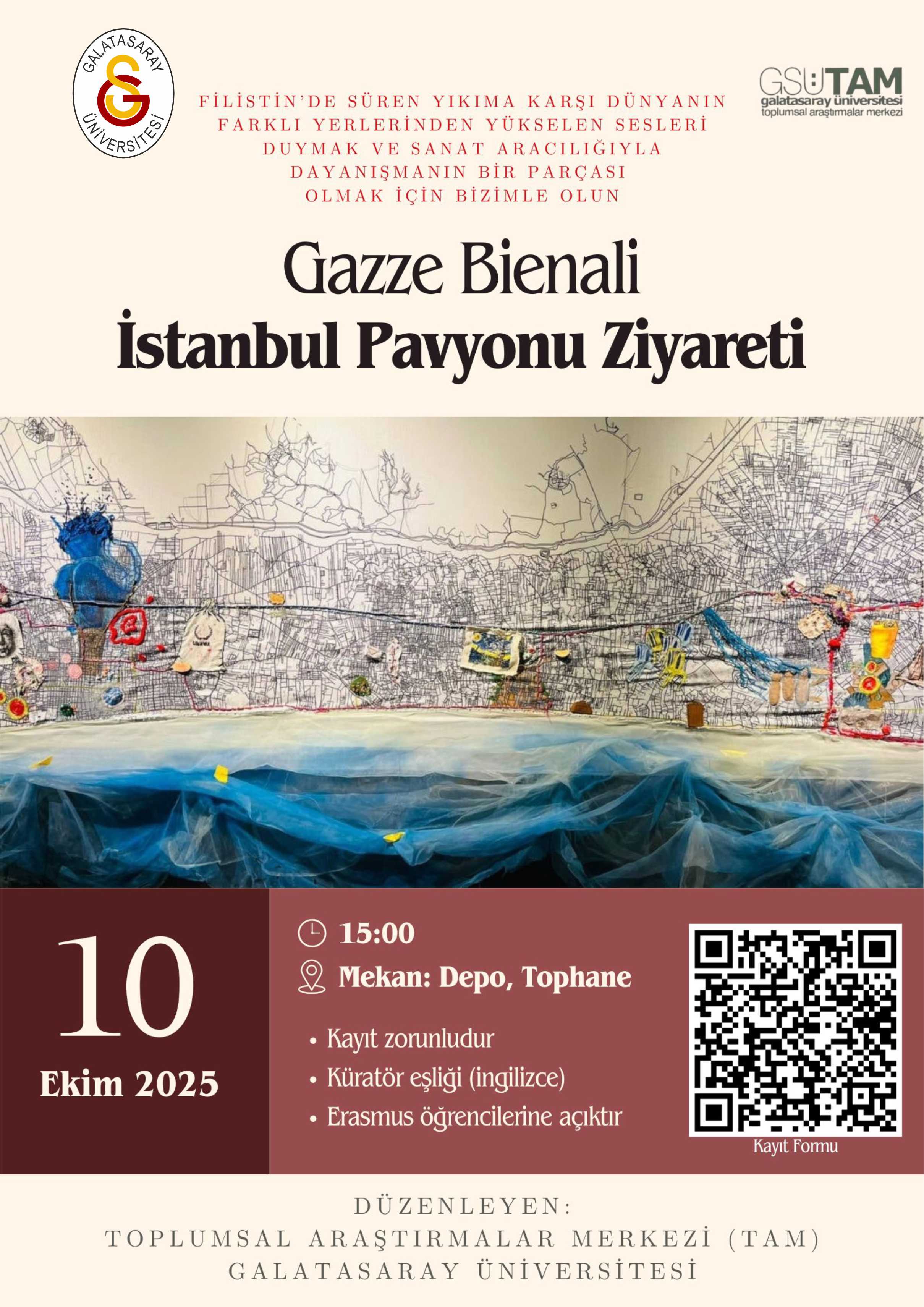 Galatasaray Üniversitesi Toplumsal Araştırmalar Merkezi (TAM) olarak, Gazze Bienali – İstanbul Pavyonu sergisine düzenlediğimiz toplu geziye sizleri davet ediyoruz.